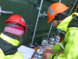 Picture 1: Pete, Tommaso and Lisa filling the sample containers, picture 2: Jorien and Tommaso sealing them and picture 3: ongoing sediment stripping.