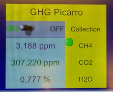 For most people on the ship, Marc’s system (the "WEGAS", standing for "Water Equilibration Gas Analyzer System") looks like that: That is the view of the “methane webcam“ on the bridge showing the results of the online measurement – basically just a normal camera pointing at his screen, filming the part of it that shows the actual methane concentration in the seawater. |