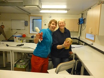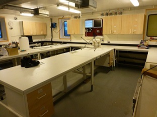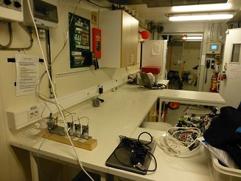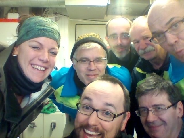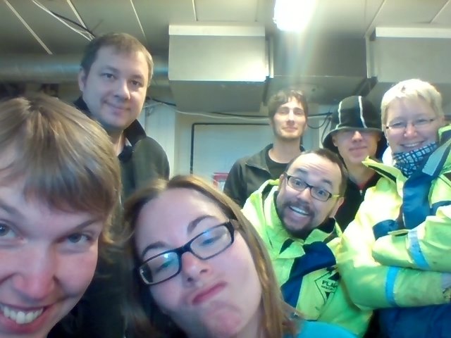 Yesterday we also started switching off most of our remaining instruments and packing everything together that will not be used during leg 2. For us, the main work was done already by packing away the stripping board several days ago, but there was still a couple of things to be rearranged in the lab, many things that have been screwed to the tables to be removed, to be packed into boxes and to be moved to the storage container. On the port side of the main lab, things will look completely different for leg 2 – Barbara, Emma and Martin have packed away all their filtration equipment, and the lab is empty and clean now. It is strange feeling today after the final cleanup in the morning: looking at the empty spaces, where only the holes in the tables tell that our equipment has been there... it feels a bit sad. It feels a bit like leaving home. We in the main lab have this feeling of it being our temporary home for the past 5 weeks. It’s not really our cabins we associate this feeling with, but the lab. For once, this is where we have spent most of our waking time (actually, I have the feeling that I have only started now to see my cabin in daylight, during most of the cruise I just went in there to immediately fall asleep and left immediately after waking up...) and we have put more effort into creating a “habitable environment for scientists” there (as Henry formulated it early in the cruise) in the lab: We had music for a good atmosphere (thanks again to Marc for even creating a special “night shift mix” for us!), even sometimes live music from the clean lab (Marcus practicing the saxophone or clarinet when waiting for an analysis to finish), a corner under a table with sleeping mats for short breaks (well, those had be originally bought as packing material and isolation for equipment, but it just turned out one could as well have a nap on them between work hours), there was the “duct tape wall”, where we put up tape pieces with funny or philosophical things that someone had said during the expedition; and we had the “mood of the day camera” which we used to take a picture every day to illustrate our respective moods (was really fun to look at it all together now in the end). And one important thing: In a way, being in the lab was like being with “the family”: there was always someone around to talk to, to help out when the work load got too heavy or when just quick help or an idea was needed, or to cheer you up or to cry with you. As you might imagine, being together in a confined space for such a long time and working really hard is not always easy, and of course we had our share of stress and tensions. But overall I have a mostly happy memories of my time onboard so far, and I am still amazed how well it worked out. And the people in the main lab (also partly including the CTD team) have really been like family to me on this trip. Some of these colleagues were already my friends before the cruise started, and I was a bit worried that working together for 6 weeks under stressful conditions might influence our friendship negatively. But the opposite happened, we have grown more together, and I can’t imagine how that cruise would have been without their support, both emotionally and from the work side. And there are other colleagues – some that I have known, but haven’t had the chance to talk to and interact much before the cruise, some that I have met now for the first time – that I got to know a lot better and really learned to appreciate on this cruise. This is not limited to the people working in and around the mainlab, but it is with them I feel this special “family” connection – since we spent so much time together, had so much fun together, were there for each other and went through so much together. And we also had similar things “to go through” on that cruise: We had similar workload at the same time, sharing both the stress of having to prepare for or to finish a station in a hurry or to wait for a station the whole night