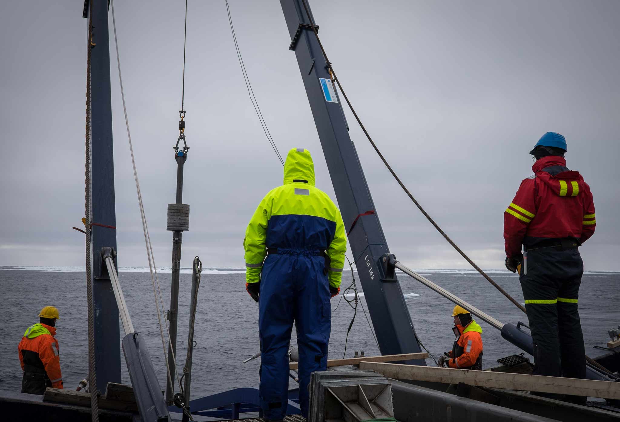 | Polarbear with cub | Work with the sediment corer on Oden’s phantail overlooked by the two polar bears | Deploying multicore | ||