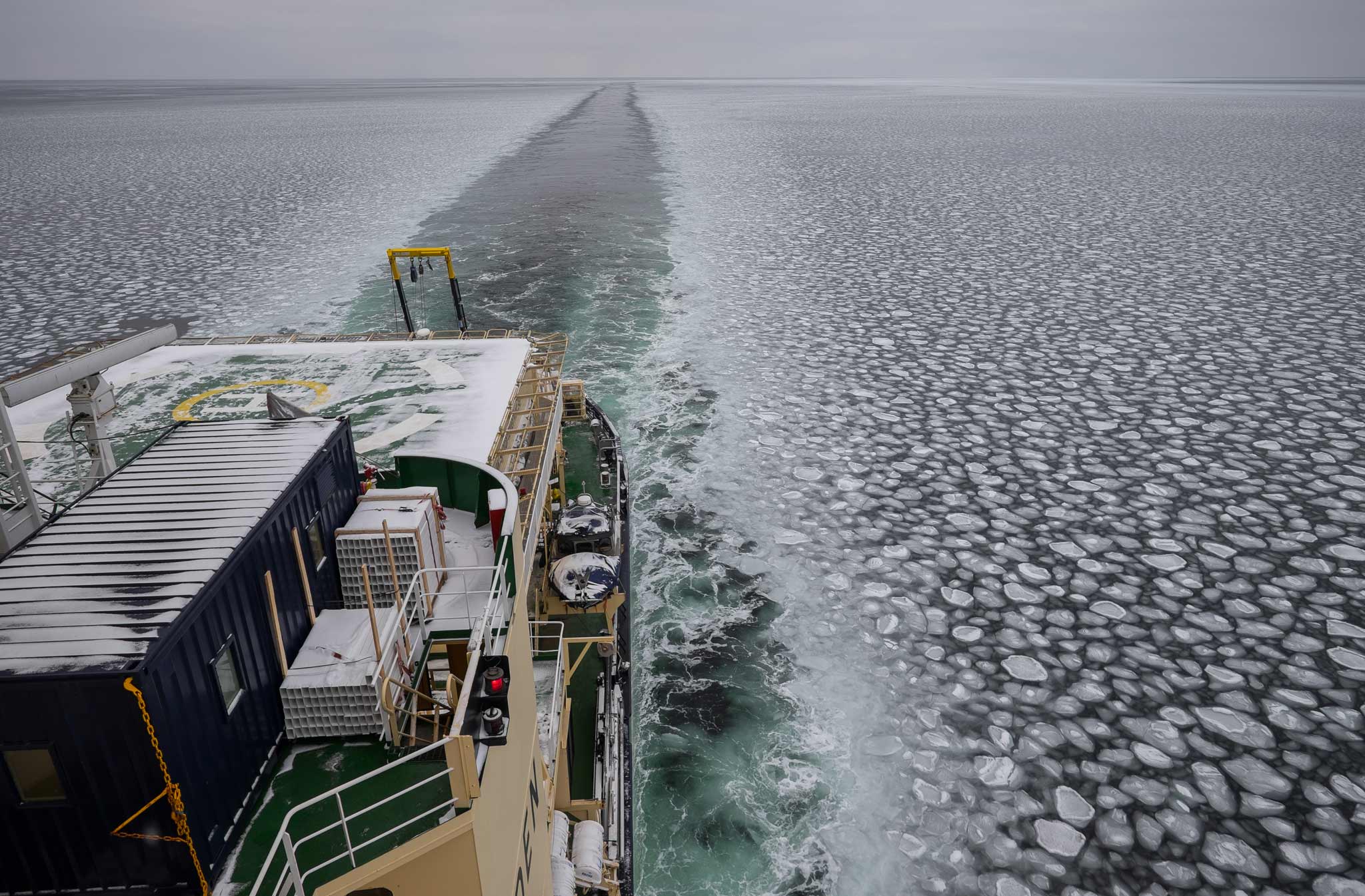 | Oden on an ocean of ice pancakes | The last CTD station | On our way home | ||