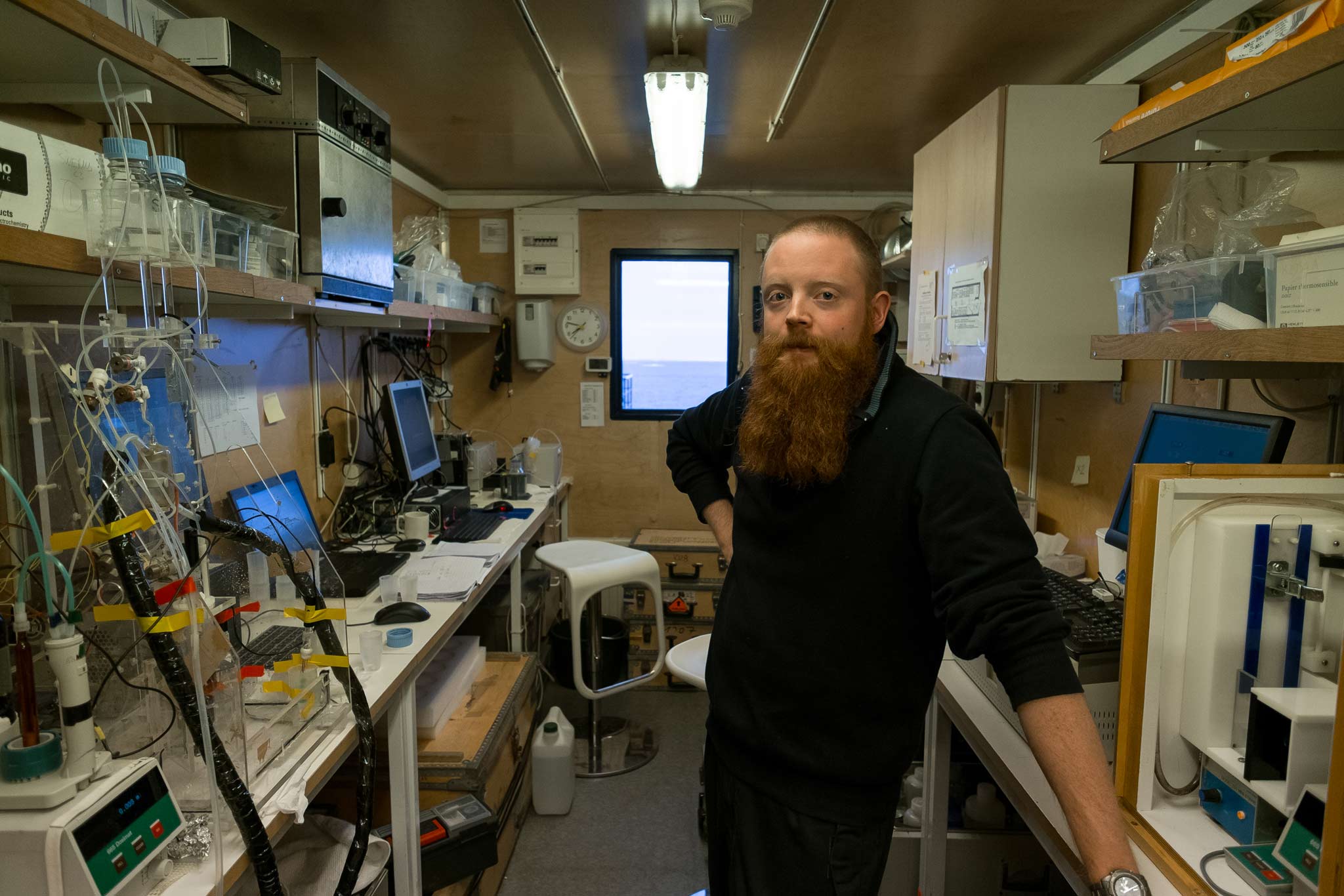 | Scientist Adam Ulfsbo (GU) in his laboratory | A visit from Polarstern | No ice |